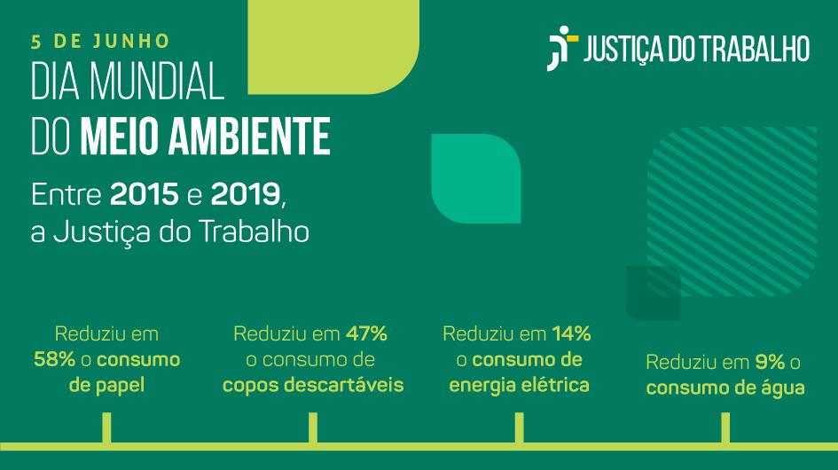 O consumo de copos descartáveis, por exemplo, foi reduzido em 47%, entre 2015 e 2019, graças a ações de substituição por copos retornáveis duráveis ou biodegradáveis em 17 TRTs, além de campanhas de conscientização sobre os malefícios do lixo plástico.