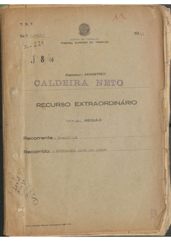 Processo postulado no ano de criação da Junta de Conciliação e Julgamento de Santos. Em 1974, 30 anos após o peticionamento, o reclamante solicita a conservação do processo que estava no rol de eliminação. Seu intuito era utilizar o processo para prova de direito à aposentadoria. |
