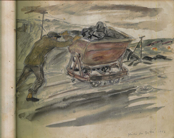 Trata-se de coleção com quatro cadernos de desenhos de autoria de Danúbio Gonçalves, em série dedicada a observação do cotidiano dos mineradores em Minas do Butiá- RS. |
