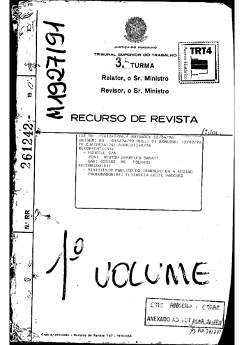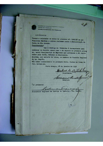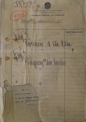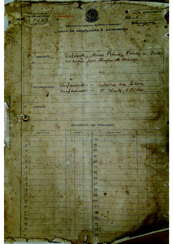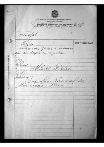 25/09/1945, no Cartório do Cível e Crime do Termo de Novo Hamburgo 05/04/1946, recebido na Junta de Conciliação e Julgamento de São Leopoldo |
