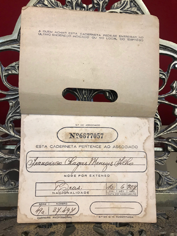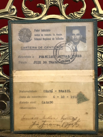 Documento; cartão; carteira; identidade; juiz; Franisco Autran Nunes |