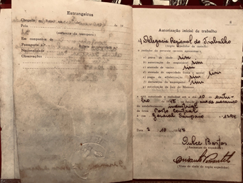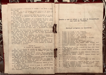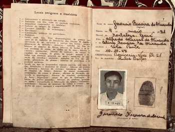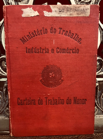 Carteira de Trabalho de menor, autorizada pela Delegacia Regional do Trabalho, com prova de idade, autorização do responsável, atestado de capacidade física e mental, prova de alfabetização e autorização do Juiz de Menor, para o cargo de auxiliar de mecânico, para trabalhar na firma Posto Central, situada à rua General Sampaio nº 1294 |