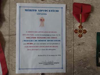 Medalha de Mérito Advocatício dado em memoria a Orlando Teixeira da Costa. |