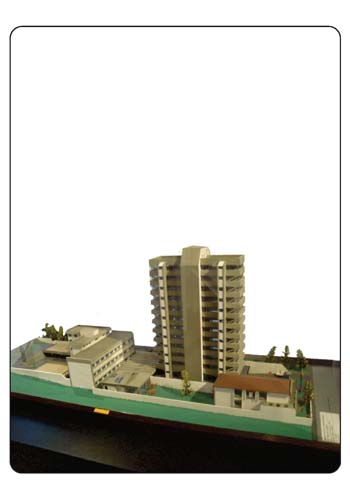 A maquete foi elaborada com a finalidade de estudar o projeto arquitetônico volumetricamente e serviu como base para aprimorar e propor modificações ao projeto base, o que auxiliou na construção do edifício atual. |