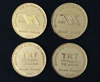 Medalhas Juiz Danilo de Carvalho Servidor Destaque 97. Criada para homenagear a memória deste respeitoso Jurista, é oferecia aos servidores que se destacam em suas funções. |