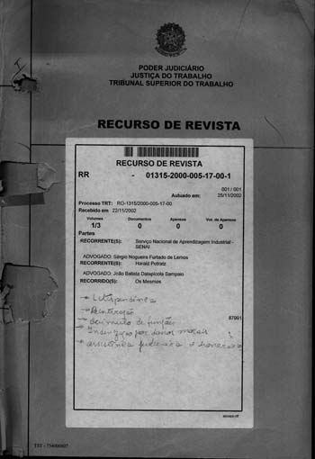 PRIMEIRO PROCESSO DE ASSÉDIO MORAL DO BRASIL - 1315.2000.005.17.00-1 |