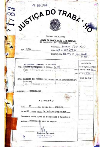 Processo; Documento arquivístico; Reclamação; Trabalhista; Reintegração; Demissão; Assédio moral; Perseguição Política; Indenização; Acúmulo de função. |