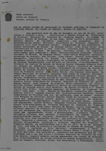Ata da sessão solene de instalação do TRT da 20ª Região |