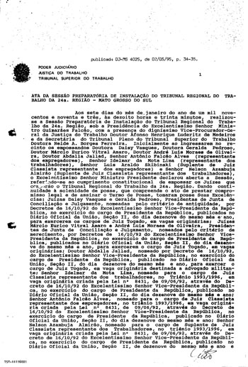 Ata da Seção preparatória de instalação do TRT 24ª Região |