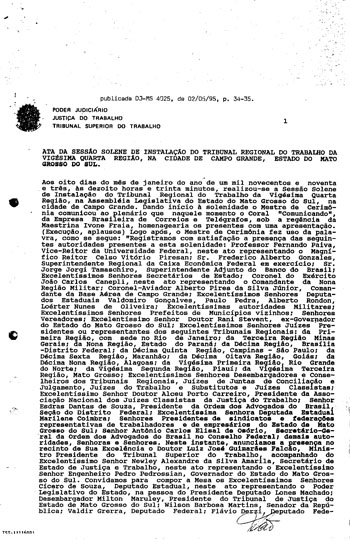 Ata da Seção solene de instalação do TRT 24ª Região |