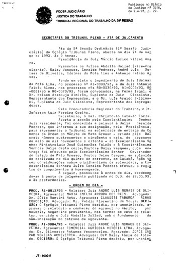Trata-se de um documento histórico, que se refere à Ata da Seção Ata da Seção preparatória de instalação do TRT 24ª Região no Estado de Mato Grosso do Sul. |