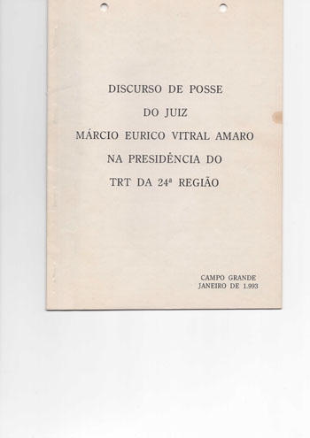 Trata-se de um documento histórico, que se refere ao Discurso de Posse do Desembargador Márcio Eurico Vitral Amaro no cargo de Presidente do TRT da 24ª Região. |