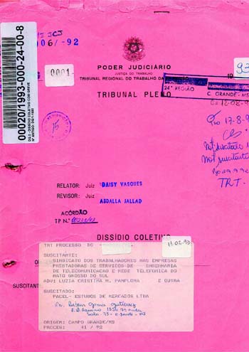 Primeiro Dissídio Coletivo julgado pelo TRT da 24ª Região. |