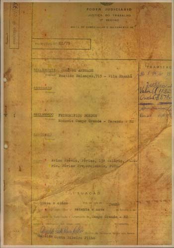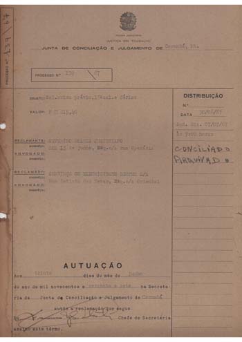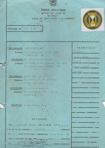 Primeira reclamação trabalhista ajuizada na primeira Junta de Conciliação e Julgamento de Campo Grande |
