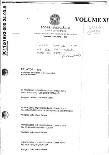Processo considerado histórico, em razão de se tratar de uma ação civil pública cujo tema “coibir a prática de “trabalho escravo” nas carvoarias do município de Ribas de Rio Pardo e Água Clara – MS. |