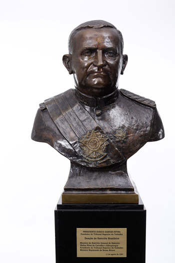 Busto do Presidente Busto Eurico Gaspar Dutra, fundador do TST. Doação feita pelo Exército Brasileiro, em 11 de agosto de 1981 com os nomes do ministro do Exército e do Presidente do TST |