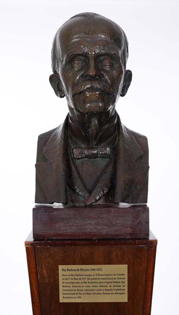 Busto de Ruy Barbosa entregue ao Tribunal Superior do Trabalho no dia 1º de maio de 1971. Na ocasião da transferência do Tribunal de sua antiga sede, no Rio de Janeiro, para a Capital Federal. |