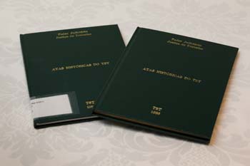 Livro “Atas Históricas do TST”. Ata da Primeira Sessão Plena Ordinária do Conselho Nacional do Trabalho [realizada em 2 de maio de 1941] -- Ata da Sessão Solene de Instalação do Tribunal Superior do Trabalho [realizada em 3 de setembro de 1946] -- Ata da Sessão de Instalação do Tribunal Superior do Trabalho na Capital Federal, BRASIL. Tribunal Superior do Trabalho. Atas históricas do T.S.T. Brasília: TST, 1986. 75 p |