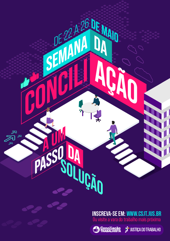 O evento, que será realizado de 22 a 26 de maio em todo o país, busca alcançar o maior número de soluções consensuais nos processos em tramitação na Justiça do Trabalho. A Semana da Conciliação Trabalhista é uma das datas mais importantes do calendário da Justiça do Trabalho, a Justiça que mais concilia.