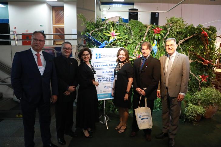 O evento contou ainda com a presença do presidente do TRT18 (Goiás), desembargador Eugênio Rosa. Ele e sua equipe estavam em Belém na intenção de tomar o TRT8 como exemplo de administração pública, haja vista que este foi certificado como o melhor Tribunal do Trabalho do país em 2024. Aproveitando sua presença, a presidente do TRT8 o convidou a participar da mesa de abertura do evento.