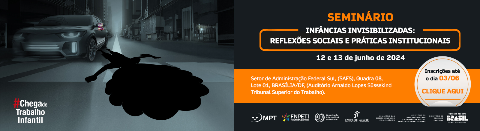 O seminário é uma ação conjunta do Fórum Nacional de Prevenção e Erradicação do Trabalho Infantil (FNPETI); do Ministério Público do Trabalho (MPT); da Justiça do Trabalho; do Ministério do Desenvolvimento e Assistência Social, Família e Combate à Fome (MDS); Ministério dos Direitos Humanos e Cidadania (MDHC); Ministério do Trabalho e Emprego (MTE) e da Organização Internacional do Trabalho (OIT).