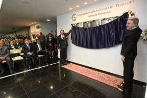 26/06/2015 - A sessão solene comemorativa aos dez anos de instalação do Conselho Superior da Justiça do Trabalho (CSJT), realizada nessa quinta-feira (25), foi marcada pela inauguração de diversas homenagens ao órgão. Dentre elas, estão a Galeria de Presidentes, o Painel Temporal do Conselho, a edição comemorativa do Regimento Interno, o selo comemorativo, o painel de frases marcantes dos Conselheiros que presidiram o CSJT e a exposição “Os 10 anos de Instalação do CSJT”. Também houve o lançamento do libreto “JT Notáveis 10 anos” e do painel das composições do Conselho, desde a sua primeira sessão, que ocorreu em 15 de junho de 2005.