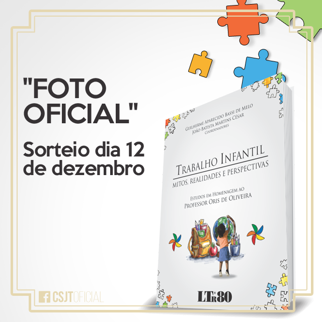 O Programa de Combate ao Trabalho Infantil e de Estímulo à Aprendizagem da Justiça do Trabalho vai realizar o sorteio de três exemplares do livro “Trabalho infantil: mitos, realidades e perspectivas” entre os seguidores do perfil @combateTrabalhoInfantilJT na rede social Instagram.