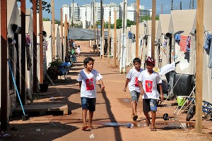 11/06/2014 - Alojadas no Parque dos Tanques em Porto Velho, crianças e familiares desabrigados pela cheia do Rio Madeira receberam uma mensagem em alusão ao Dia Mundial de Combate ao Trabalho Infantil, comemorado no dia 12 de junho e que foi antecipado para o último sábado (07), devido ao início da Copa do Mundo.