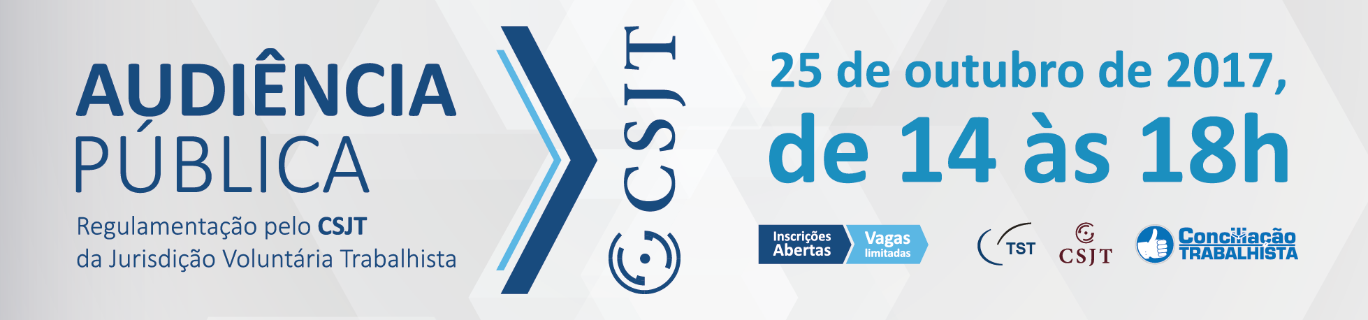 Estão abertas as inscrições para ouvintes que queiram participar da audiência pública relativa à efetivação de acordos trabalhistas extrajudiciais após a entrada em vigor da Lei 13.467/2017. O evento convocado pela vice-presidência do Conselho Superior da Justiça do Trabalho (CSJT) será realizado no dia 25 de outubro, das 14h às 18h, na sede do Tribunal Superior do Trabalho (TST). O credenciamento para expositores terminou no último dia 13.