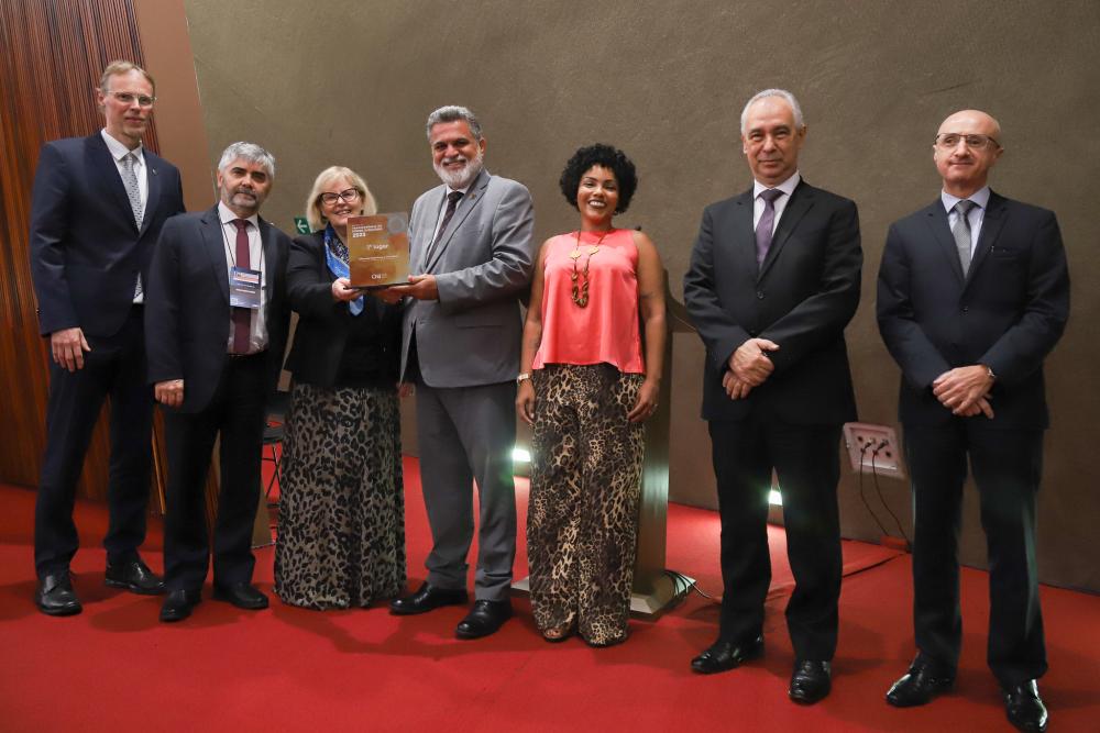 Ministro Lelio Bentes recebeu o troféu da presidente do STF e do CNJ, ministra Rosa Weber. (Foto: Romulo Serpa/Ag.CNJ)