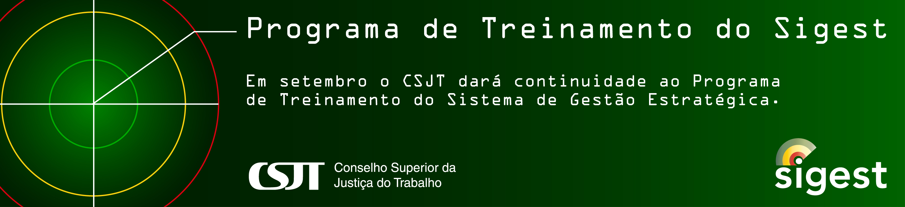 O Conselho Superior da Justiça do Trabalho (CSJT) dará continuidade, no mês de setembro, ao Programa de Treinamento do Sistema de Gestão Estratégica – Sigest. O curso, que será realizado pela Coordenadoria de Gestão Estratégica/CSJT e já está com as turmas fechadas, tem como público-alvo os servidores lotados nas Unidades de Gestão Estratégica de cada um dos 24 Tribunais Regionais e do Tribunal Superior do Trabalho (TST), e objetiva capacitar os servidores a gerir e executar os planos estratégicos de seus respectivos Tribunais.