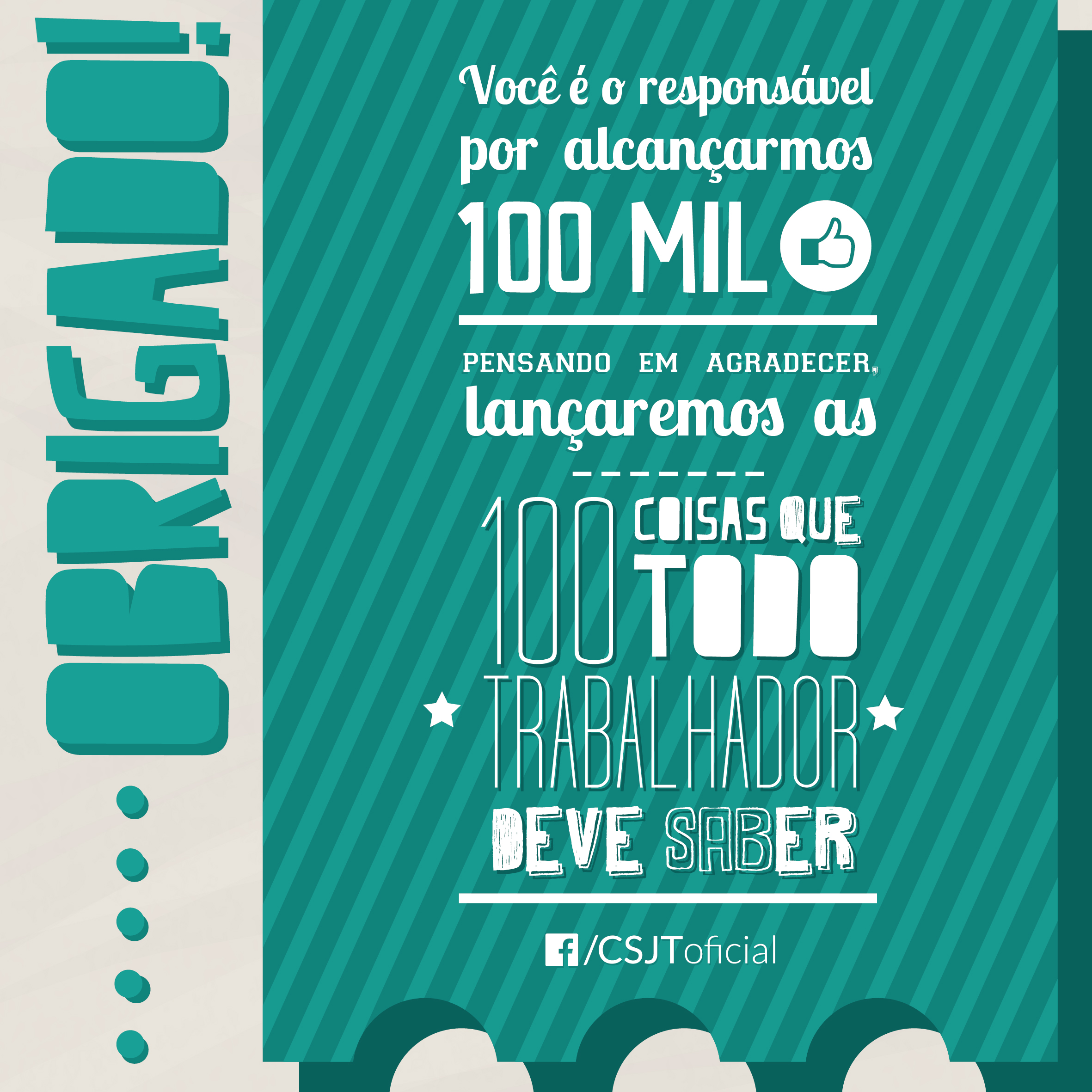 Para acompanhar a campanha “100 coisas que todo trabalhador deve saber” basta curtir a página do CSJT no Facebook: www.facebook.com/CSJToficial.