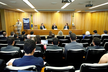 Relações institucionais. O Presidente Barros Levenhagen e o Secretário da SETIC enalteceram a interação entre instituições no Simpósio, para o debate sobre informações técnicas e boas práticas. Os gestores de Tecnologia da Informação da Justiça do Trabalho vão conhecer projetos e experiências do BCB, TCU, Universidade Católica de Brasília (UCB), Gartner Group – empresa norte-americana que desenvolve tecnologias – e dos Tribunais Regionais do Trabalho da 4ª (RS) e 19ª (AL) Regiões.