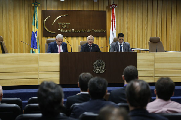 O presidente do Tribunal Superior do Trabalho (TST) e do Conselho Superior da Justiça do Trabalho (CSJT), ministro Ives Gandra da Silva Martins Filho, participou nesta quinta-feira (30) do Encontro Nacional de Tecnologia da Informação da Justiça do Trabalho (Enastic/JT). O evento tem o objetivo de debater a modernização dos processos, além do compartilhamento de ideias sobre novas tecnologias e apresentação de cases. Marcaram presença na abertura o ministro do TST Alexandre de Souza Agra Belmonte e o juiz auxiliar da presidência, Maximiliano Pereira de Carvalho. O evento contou, também, com a palestra inicial de Pietro Delai, gerente de Pesquisa e Consultoria na International Data Group. Segundo Pietro, o Brasil está entre os maiores mercados de tecnologia da informação, estando em 6º lugar no ranking mundial.