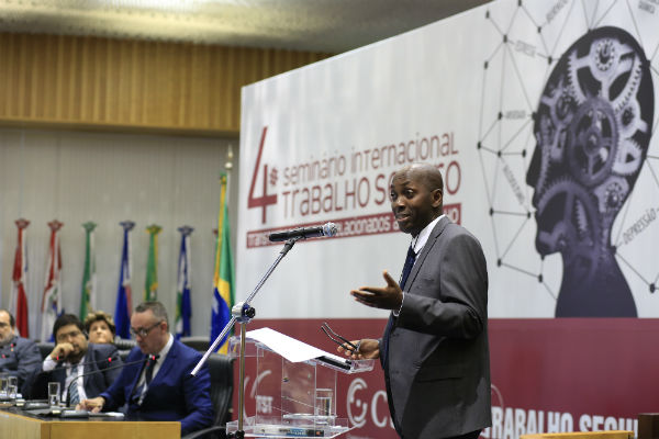 A conferência que abriu a programação desta quinta-feira (19) do 4º Seminário Internacional Trabalho Seguro, que trata dos transtornos mentais relacionados ao trabalho, proferida pelo francês Augustin Émane (foto), professor da Faculdade de Direito e Ciências Políticas da Universidade de Nantes, teve como tema “Da saúde física à saúde mental: evolução e impactos jurídicos”. Émane buscou demonstrar as razões pelas quais o Direito, por muito tempo, não se ocupou da questão da saúde mental no ambiente de trabalho, o que o levou a se preocupar com elas nos dias de hoje e o que pode ser proposto para o futuro.