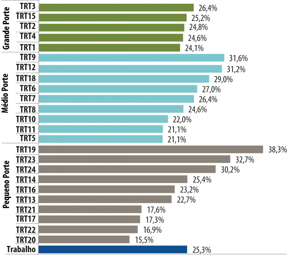 O destaque vai para o TRT da 19ª Região (Alagoas) que apresentou o melhor resultado solucionando 38,3% de seus processos em conciliações. Destes, 46% dos acordos foram na fase de conhecimento e 24% na fase de execução.