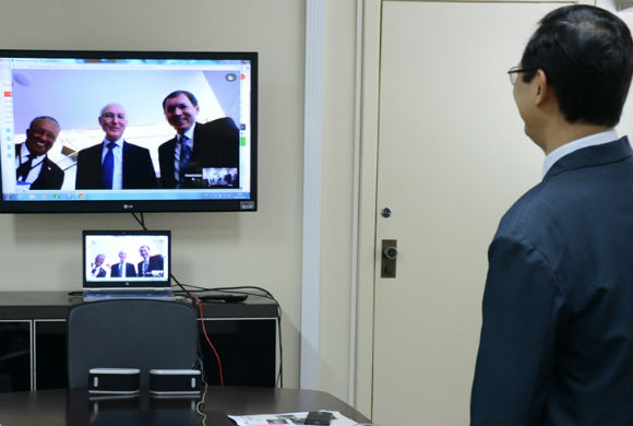 O presidente do Conselho Superior da Justiça do Trabalho (CSJT), ministro Ives Gandra Martins Filho, testemunhou um ato inédito na história da Justiça do Trabalho: a posse de um desembargador por sistema hangouts, uma plataforma de mensagens instantâneas e chat de vídeo.