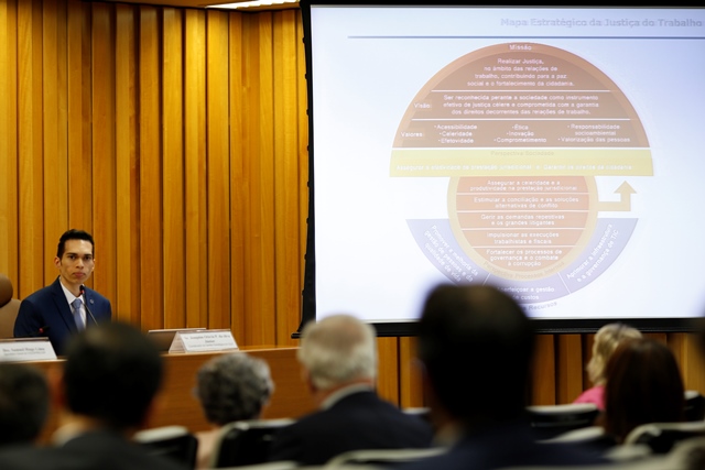 O coordenador apresentou, primeiramente, o mapa estratégico da JT, antes de falar de cada um das metas estipuladas, e destacou que "os indicadores são ferramentas que refletem os objetivos estratégicos e auxiliam a Justiça do Trabalho no cumprimento da sua missão, no alcance da sua visão e na garantia dos seus valores". O trabalho da CGEST também pontuou os TRTs que obtiveram melhores desempenhos em cada uma das metas.