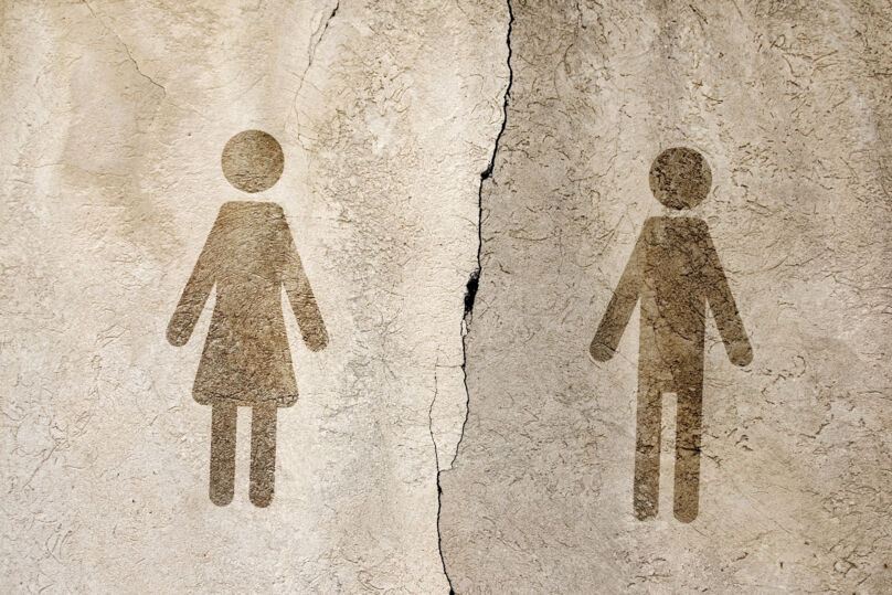 Imagem: desenho de casal em pedra, com rachadura no meio
