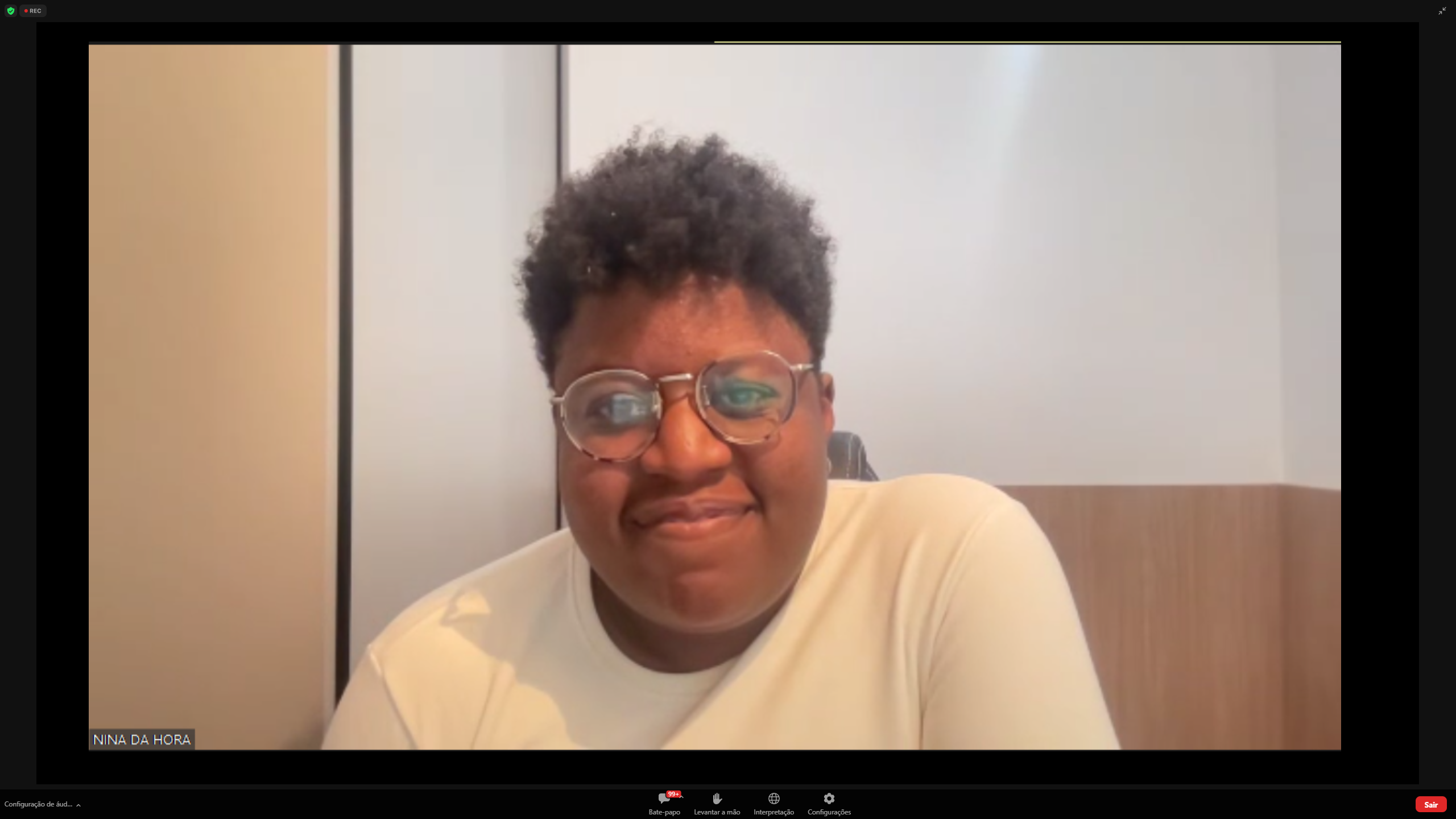 O encontro virtual com Nina da Hora foi transmitido pela plataforma Zoom.