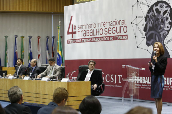 Ainda na manhã do segundo dia do Seminário Internacional Trabalho Seguro, que discute os transtornos mentais relacionados ao trabalho, um painel com três expositores, coordenado pelo ministro Lelio Bentes, do Tribunal Superior do Trabalho (TST), debateu temas como depressão, estresse e ansiedade. A psicóloga Ana Maria Rossi, diretora da Clínica de Stress e Biofeedback, levantou discussão sobre a síndrome de burnout (ou síndrome de esgotamento profissional), um tipo de estresse avançado com sintomas similares aos da depressão, mas causado exclusivamente por questões relacionadas ao trabalho. Para empresas e instituições, os prejuízos estão nos custos com licenças e processos trabalhistas, além de perda da qualidade do desempenho de funções.