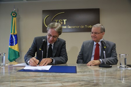 25/03/2015 - O Conselho Superior da Justiça do Trabalho (CSJT) e o Tribunal Superior do Trabalho (TST) firmaram acordo de cooperação técnica, nesta quarta-feira (25), com o Tribunal Regional do Trabalho da 12ª Região (SC), para o desenvolvimento e a manutenção do módulo de Gestão Interna de Gabinete e Secretaria (GIGS) do Processo Judicial Eletrônico da Justiça do Trabalho (PJe-JT). Elaborado pela equipe técnica do regional catarinense, esse módulo facilita o controle de prazos processuais e o registro de estatísticas por parte de magistrados e servidores.