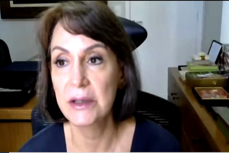 Print da tela da participação da ministra Maria Cristina Peduzzi na transmissão do CNJ. (foto: CNJ)