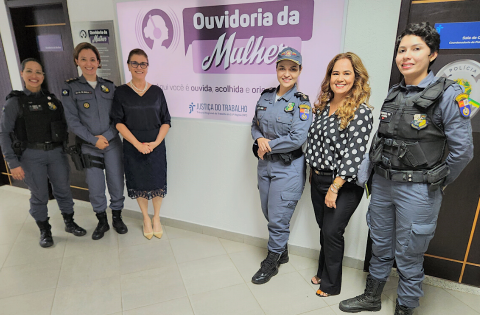 Na imagem, membros da patrulha Maria da Penha e da ouvidoria da mulher do TRT 23