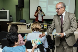 08/08/2014 - Gestores, educadores, secretários das unidades escolares, professores, bibliotecários e técnicos educacionais de 70 escolas da rede estadual participaram, nesta quinta-feira (07/08), de reunião de divulgação da 9ª edição do concurso Arte Livre, com o tema “Trabalho infantil não é legal”, para alunos das escolas estaduais, municipais e particulares.