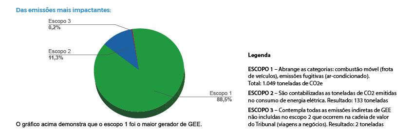A quantificação total das emissões do TRT-18 em 2022 foi de 1.185,229 toneladas de CO2e. De acordo com dados levantados pela DSAI, o Tribunal Superior do Trabalho (TST) emitiu 896,567 toneladas em 2021 e o TRT da 15ª Região produziu 2.519,335 toneladas em 2022. Essas emissões são obtidas por cálculos que quantificam, por exemplo, o consumo de energia elétrica, uso de ar condicionado e frota de veículos. (Confira mais detalhes no gráfico no fim da matéria).