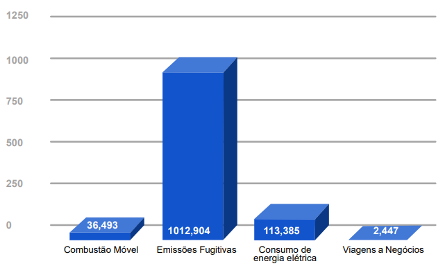 Gráfico que quantifica as emissões do TRT-18. Entre elas, as emissões fugitivas, que são gases e vapores provenientes de equipamentos de refrigeração e ar-condicionado e extintores de incêndio: