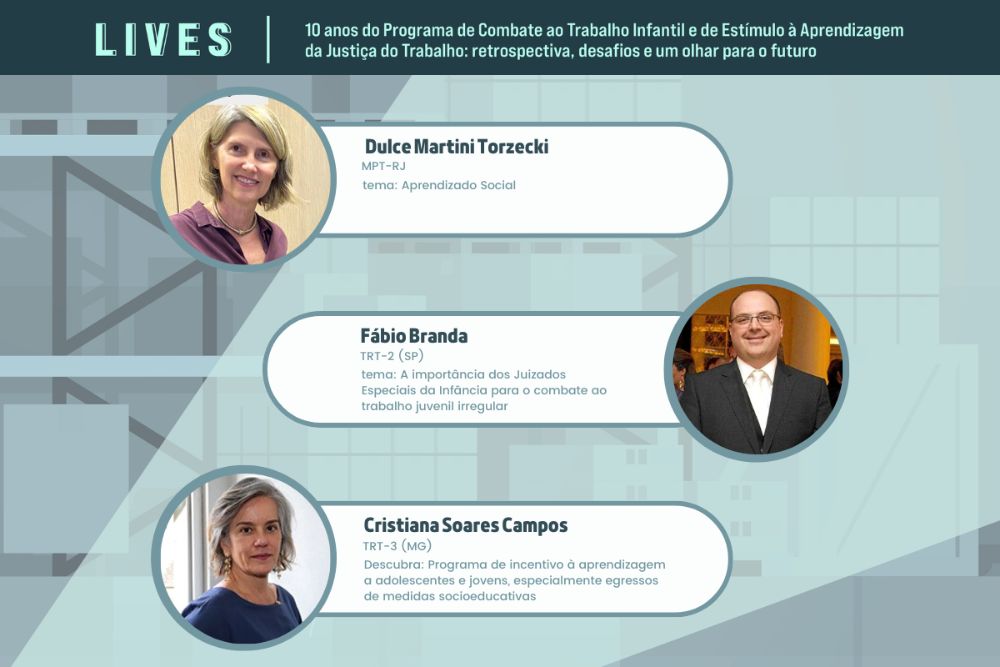 A programação está inserida em um conjunto de lives nacionais, uma de cada região do Brasil, em comemoração aos 10 anos do Programa de Combate ao Trabalho Infantil e de Estímulo à Aprendizagem da Justiça do Trabalho. Esta será a terceira live.