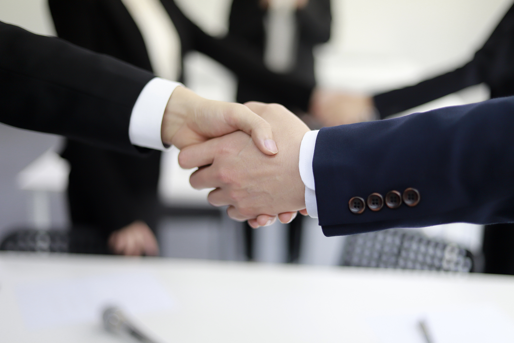 Na imagem, pessoas se cumprimentando simbolizando um acordo fechado
