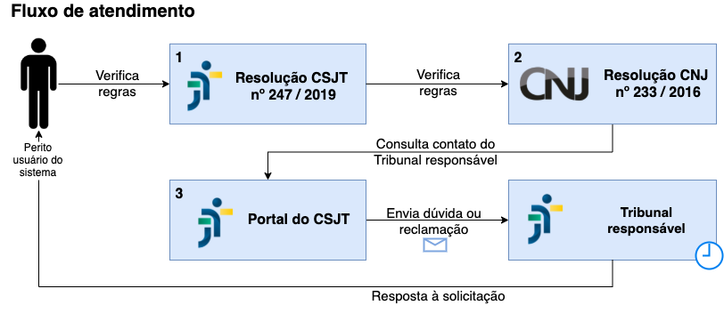 1º - Verifique se o procedimento que está tentando realizar condiz com as regras estabelecidas na Resolução n. 247/CSJT, de 25 de outubro de 2019, e na Resolução CNJ nº 233, de 13 de julho de 2016.